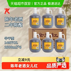 绍兴女儿红黄酒陈年花雕酒壶装2.5L*6桶装老酒整箱料酒泡阿胶