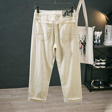 春秋款宽松直筒牛仔裤男白色纯棉经典款美式高街长裤男士休闲裤子