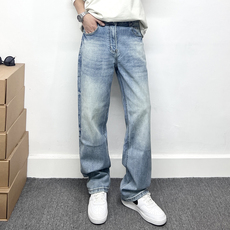 【抖音同款】牛仔裤男款休闲裤男高端印字母宽松直筒经典褪色裤子