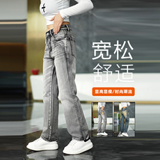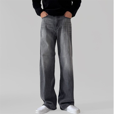 美式经典简约灰色牛仔裤男春秋款直筒宽松大码潮流休闲裤男款裤子