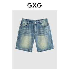 GXG男装2024年夏季男士经典直筒做旧水洗牛仔裤休闲短裤男