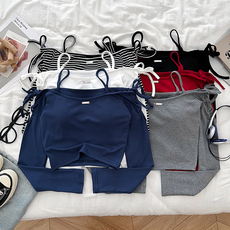 【TiTi美少女】纯欲挂脖无袖绑带T恤女春季显胸修身短款显瘦上衣