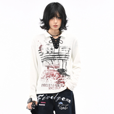 fragileheart易碎商店·街春信 衬衫拼接一字肩T恤绑带上衣短袖秋