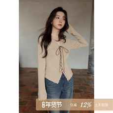 纯欲风收腰显瘦绑带辣妹上衣秋冬款内搭蝴蝶结设计修身长袖T恤女