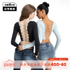 noBra by ABMY 辣妹后背镂空绑带T恤秋收腰显瘦长短袖带胸垫上衣