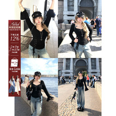 【清仓秒杀】秋韩系绝美巨好看上衣气质小众流行修身绑带长袖t恤