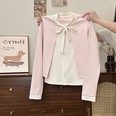 奶油的宇宙 绑带撞色假两件长袖t恤女修身日系甜美风初秋短上衣