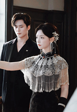 重工钉珠短流苏旗袍云肩短剧同款婚礼结婚礼服中式黑色旗袍披肩