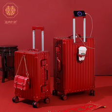 结婚行李箱陪嫁箱女红色新娘婚礼备婚用铝框款拉杆旅行密码皮箱子