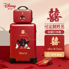 迪士尼行李箱女24寸红色结婚陪嫁箱一对大容量拉杆箱旅行箱子母箱