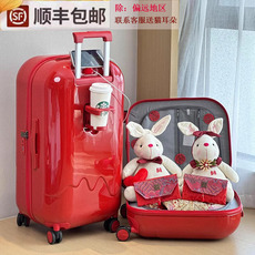 新娘结婚行李箱红色拉杆箱陪嫁密码嫁妆旅行箱女皮箱婚礼用品