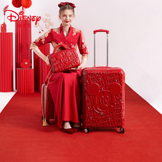 Disney/迪士尼24寸ins网红行李箱女密码拉杆箱旅行箱红色结婚箱子