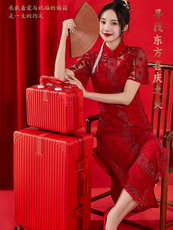 结婚女方陪嫁箱一对红色行李箱登机密码箱婚礼嫁妆拉杆箱旅行箱子