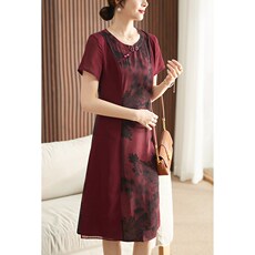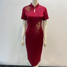 酒红色醋酸旗袍新款礼服高端结婚礼妈妈装日常可穿喜婆婆宴会夏装