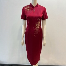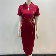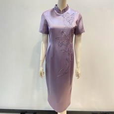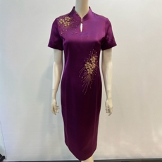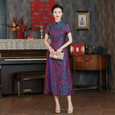高档醋酸连衣裙结婚喜服夏装短袖高贵气质喜妈妈婚庆礼服改良旗袍