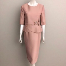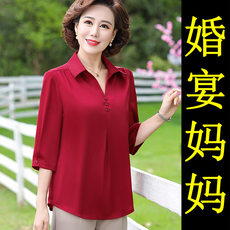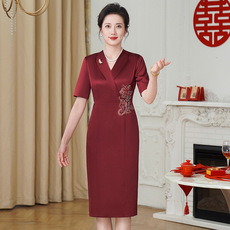 结婚喜服春夏装喜婆婆婚宴装高贵丈母娘敬酒礼服醋酸缎连衣裙短袖