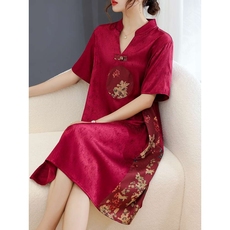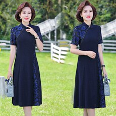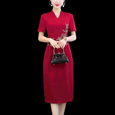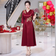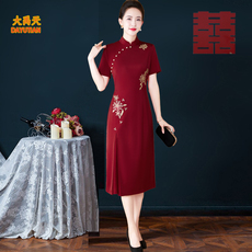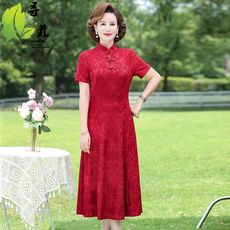 新款夏装妈妈装年轻改良旗袍中年结婚礼服婚庆连衣裙中长款显瘦