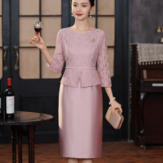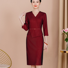 喜婆婆婚宴装假两件套春夏装高贵连衣裙结婚礼喜妈妈礼服年轻洋气
