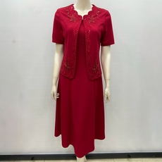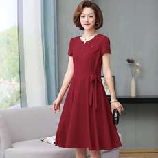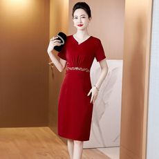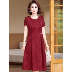 年轻中年妈妈夏装红色连衣裙中老年女装结婚礼服喜婆婆婚宴装高贵