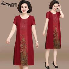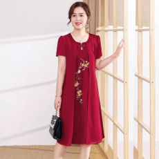 中年妈妈新款连衣裙夏季喜婆婆婚宴礼服结婚裙子女中老年雪纺夏装