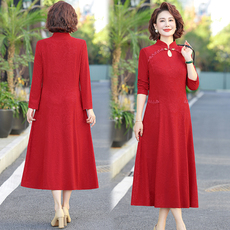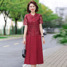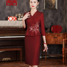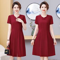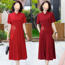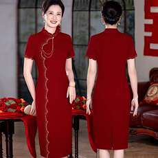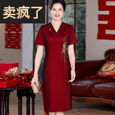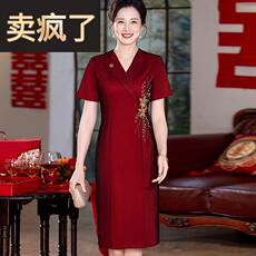 结婚礼服妈妈夏装改良旗袍连衣裙高贵红色喜婆婆婚宴夏季平时可穿