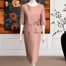 高端重烫钻串珠两件套短袖连衣裙喜婆婆结婚礼服喜妈妈春夏装裙子