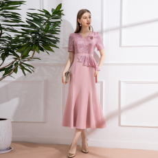 古贝莎高端品牌网纱夏装结婚礼服婚宴洋气妈妈装修身连衣裙子