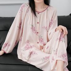 睡衣女春秋款绵绸薄款家居服可外穿加肥加大200斤可穿棉绸套装夏