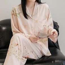 2025年春秋新款夏季女士棉绸睡衣套装长袖人造绵绸家居服可外穿