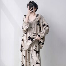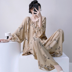 长袖棉绸睡衣女士春夏人造棉绵绸薄款宽松新中式可外穿凉感家居服