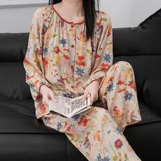 中老年棉绸睡衣女款夏季2025新款长袖套装冰丝大码绵绸妈妈家居服