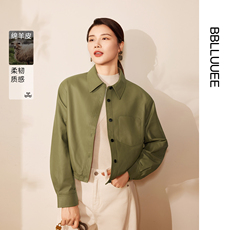 海宁皮夹克女短款秋新款休闲上衣气质通勤绵羊皮衣小个子百搭外套