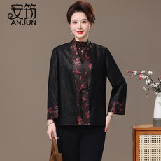 高端真皮羽绒服女新款冬季中式国风印花中老年短款绵羊皮皮衣外套