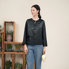 【绵羊皮】马天奴女装黑色短款圆领皮衣简约质感外套外搭春秋新款