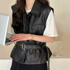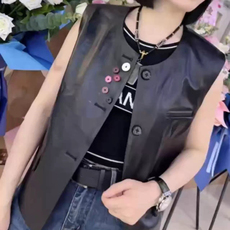 大彤彤同款后背镂空真皮马甲女绵羊皮短款U型领百搭背心坎肩皮衣