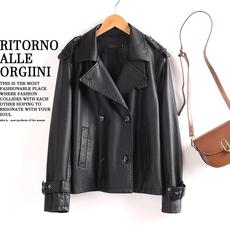 2024新款双排扣真皮皮衣女短款绵羊皮翻领皮夹克修身显瘦机车外套