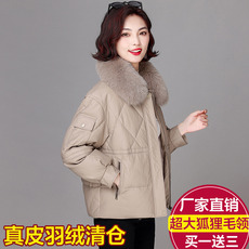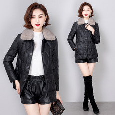 真皮羽绒服女短款2025新款冬立领时尚显瘦大码海宁皮衣绵羊皮外套