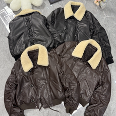 2025秋季新款真皮皮衣女短款绵羊皮拼植绒牛仔外套夹克立领时尚潮