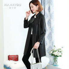 海宁时尚秋季新款女装绵羊皮外套修身中长款真皮皮衣女时尚韩版