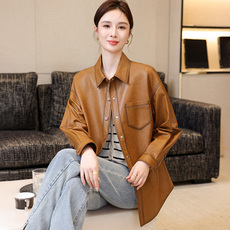 2025新款上市优质精品年秋季时尚气质衬衫领衣女装真皮绵羊皮皮衣
