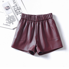 海宁真皮皮裤女短裤松紧高腰大码外穿2025秋冬新款绵羊皮阔腿靴裤