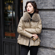 海宁真皮羽绒服女短款2025冬新款狐狸毛领韩版大码绵羊皮皮衣外套