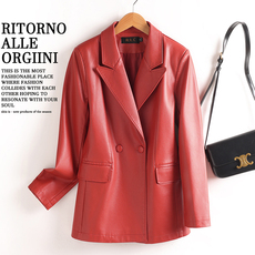 海宁真皮皮衣女绵羊皮外套女短款西装宽松韩版显瘦洋气皮夹克西服