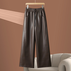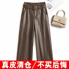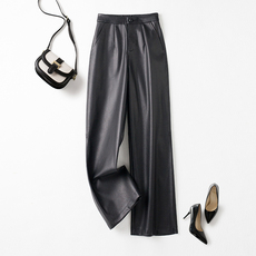 海宁真皮皮裤女2025秋冬新款绵羊皮高腰显瘦宽松直筒裤窄版阔腿裤