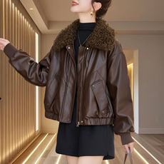 海宁皮毛一体真皮绵羊皮皮衣外套女爆款冬高端大码女装短款皮夹克