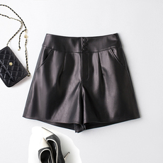 海宁真皮短裤阔腿宽松显瘦羊皮皮短裤2025秋百搭a字绵羊皮女皮裤