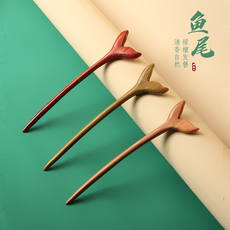 高级感日常鱼尾簪子天然绿檀木百搭古风简约木簪子生日礼物女盘发