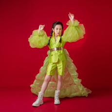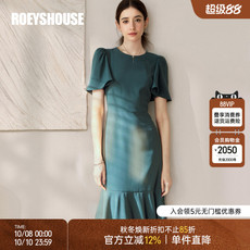 罗衣时尚荷叶袖收腰连衣裙女2025夏季新款优雅绿色鱼尾裙子06274