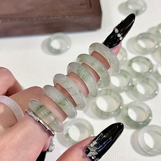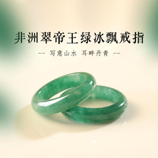 高冰天山翠戒指女款 冰飘绿花戒指素圈食指戒尾戒冰种玉石指环