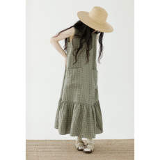 复述【色织雨露麻】 绿白小格子鱼尾无袖背心裙文艺复古连衣裙女